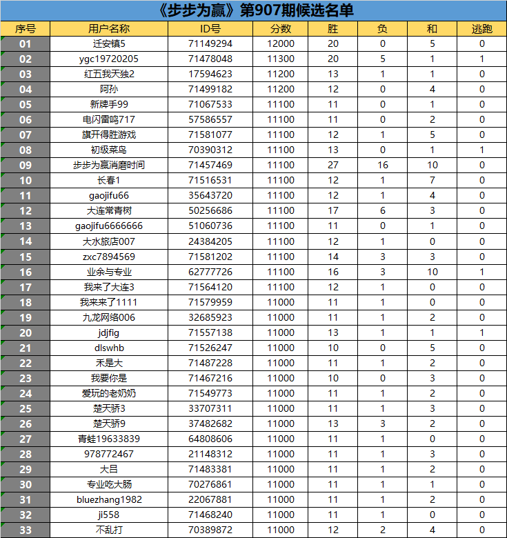 经过一周的激烈角逐,《步步为赢》第907期网络海选的33名候选选手已经揭晓。