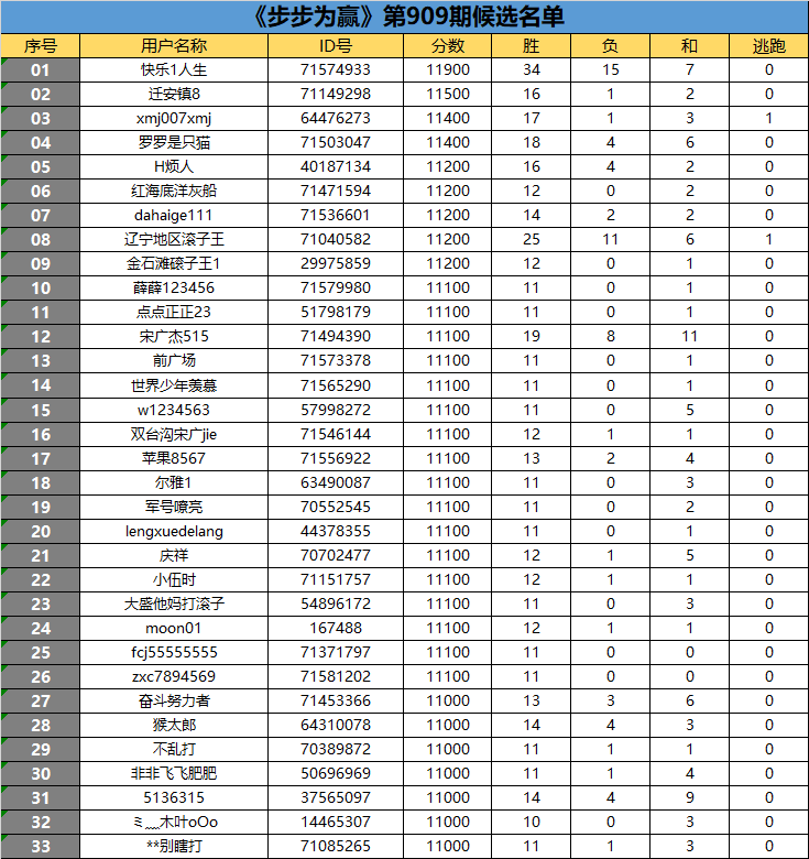 《步步为赢》第909期候选名单公布