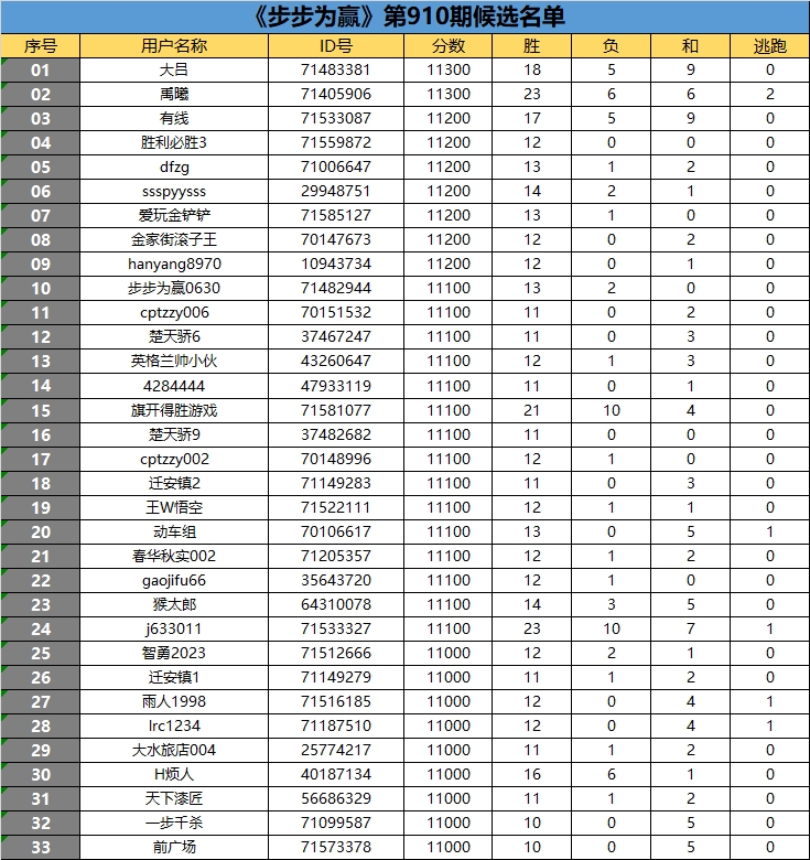 本期33名选手全部晋级。请晋级玩家在2025年10月31日—11月6日,周一至周五10:00-18:00,拨打131-4784-0911确认资格,登记个人信息以便电视台通知面试,逾期未进行确认者将被视为自动放弃晋级或替补资格。(参赛选手的年龄上限调整为75周岁(以身份证出生日期为准)。很抱歉,超过此年龄的选手将暂时无法参与节目报名)。