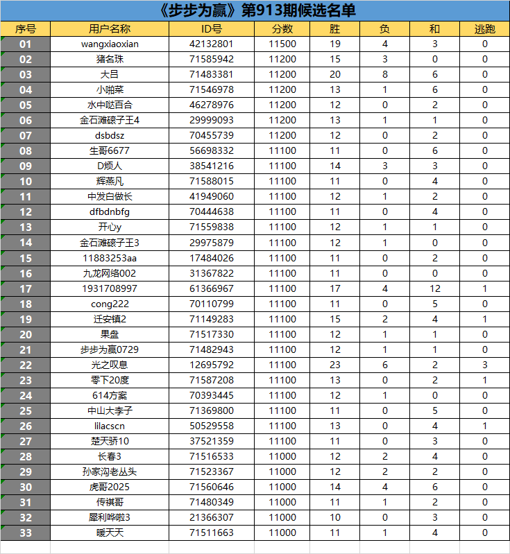 经过一周的激烈角逐,《步步为赢》第913期网络海选的33名候选选手已经揭晓。