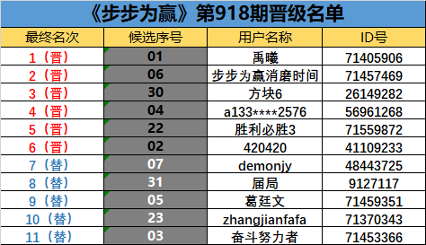 根据2025年12月25日中国福利彩票“双色球”玩法第25149奖结果,《步步为赢》第918期晋级名单已经产生。