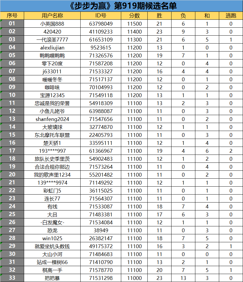 《步步为赢》第919期候选名单公布