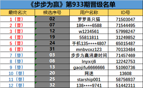 根据2026年4月17日中国福利彩票“双色球”玩法第26042奖结果,《步步为赢》第933期晋级名单已经产生。