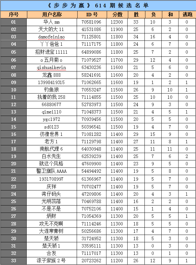 《步步为赢》第614期候选名单公布