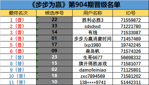 根据2025年9月18日中国福利彩票“双色球”玩法第25108奖结果,《步步为赢》第904期晋级名单已经产生。