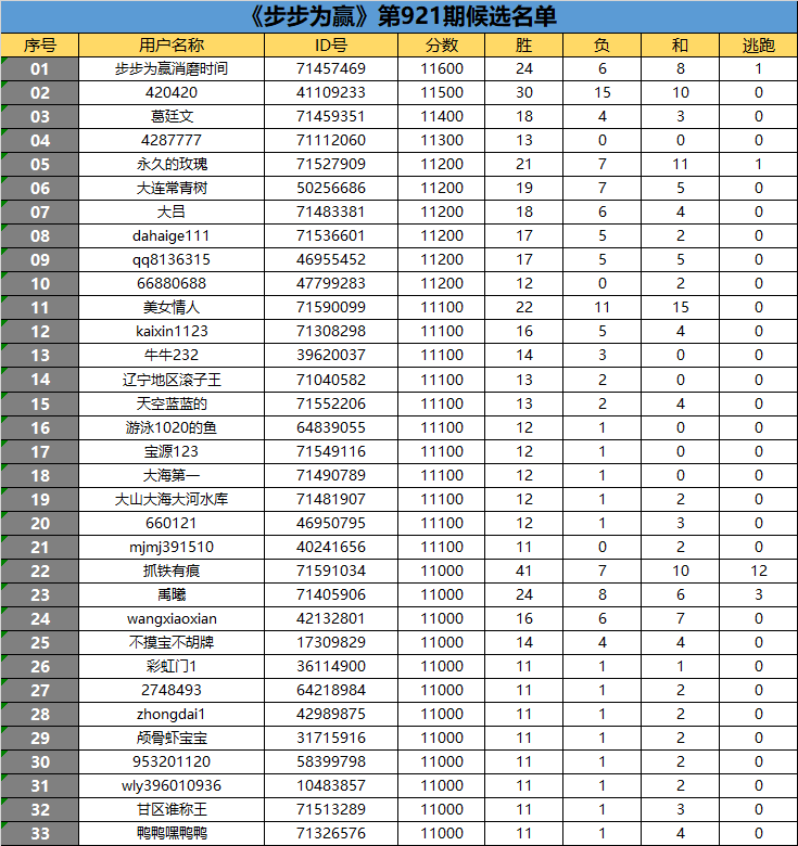 《步步为赢》第921期候选名单公布