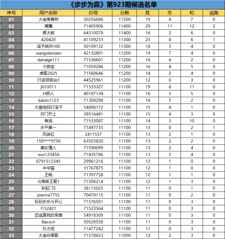 《步步为赢》第923期候选名单公布