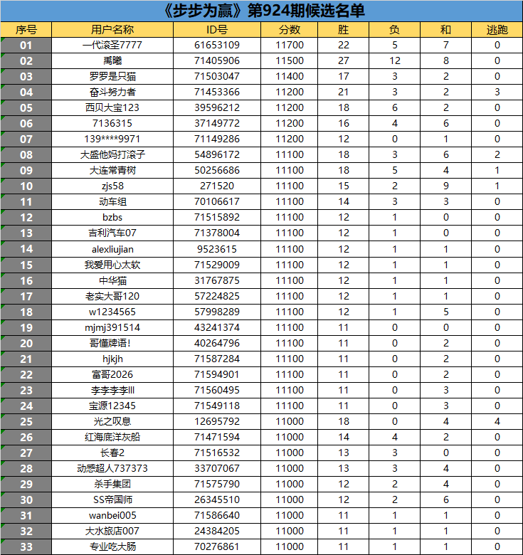 《步步为赢》第924期候选名单公布