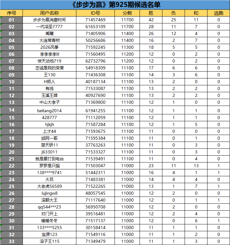 《步步为赢》第925期候选名单公布